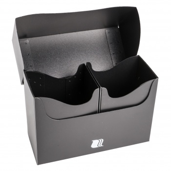 - Curved, self locking lid- very durable PP-material- suitable for 160 double sleeved cards in standard size (up to 200 single sleeved)- contains 2 removable card compartments