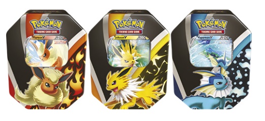 In ogni Tin da Collezione Evoluzioni di Eevee trovi: - 4 buste di espansione del GCC Pokemon - 1 carta Pokemon V foil (Flareon V, Jolteon V, Vaporeon V) - 1 carta codice per il Gioco di Carte Collezionabili Pokemon Online