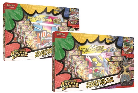 Lingua: ItalianoData d'Uscita prevista: 20 marzo 2026* *circaIMBALLO (6 confezioni)Descrizione:La collezione con poster premium Mega Lucario e Mega Gardevoir dell'espansione Megaevoluzione - Ascesa Eroica del GCC Pokémon contiene: - Una carta promozionale olografica - Un poster fronte retro di 68,26 x 99,06 cm- 10 buste dell'espansione Megaevoluzione - Ascesa Eroica del GCC Pokémon- Una carta codice per il GCC Pokémon Live*Ordine minimo 2 pezzi, 1 x soggetto.
