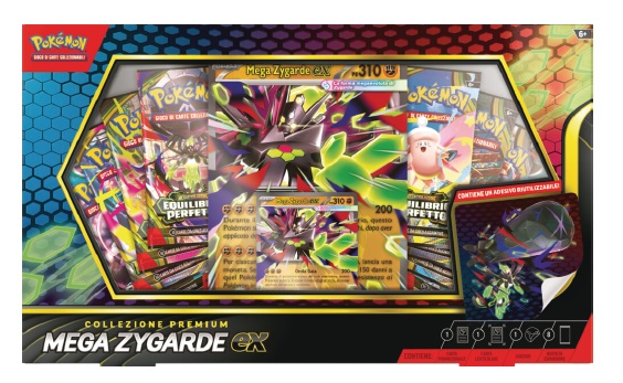 Deadline ordini: IL PROSSIMO MARTEDI' 31 MARZO Lingua: Italiano* Disponibilità: 1 maggio 2026 *CIRCADescrizione: La collezione premium Mega Zygarde-ex del GCC Pokémon contiene:• Una carta promozionale olografica di Mega Zygarde-ex• Una carta promozionale lenticolare gigante di Mega Zygarde-ex• Un adesivo con Mega Zygarde-ex• Otto buste di espansione del GCC Pokémon