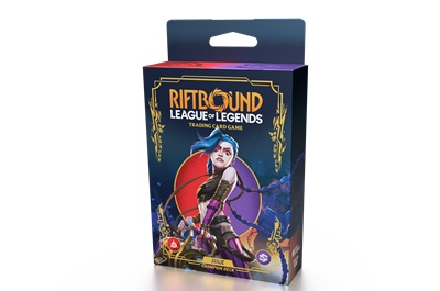 Blow It All Up! Jinx’s preconstructed 56-card deck is filled with aggressiveunits, explosive spells, and features an iconic Champion Card of Jinx herself.Get out there and see what she's made of!Ready to Play – A full 56-card preconstructeddeck featuring Jinx, designed for accessible anddynamic gameplay.Upgrade with Ease – Includes 3 rares with a clearpath to competitive upgrades—perfect for bothnewcomers and veterans.Extras to Keep You in the Action – Includes afull-size paper playmat, a booster pack forcustomization, and deck-building tips.Booklet Included – Learn the game with aneasy-to-follow rules and deck-building guide.Custom Paper Deckbox – A durable, foldabledeckbox that ships flat and assembles quickly,keeping your cards safe and portable.Designed for Display – One single row display (4decks) designed to display alongside the other 2deck displays! Each deck features high-qualityfinishes and eye-catching designs.