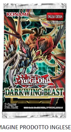 Licenza: Yu-Gi-Oh!Tipo di prodotto: Core BoosterData di uscita: 20.10.2022Composizione:Busta (9 carte)Display (24 confezioni)Cassa (12 display) L’espansione Darkwing Blast contiene 100 carte:50 Carte Comuni26 Carte Super Rare14 Carte Ultra Rare10 Carte Segrete RareNOVITA’ IN DARKWING BLAST? Un sacco di piume in volo con le nuove carte “Alanera”! Scopri i nuovi Tuner che ti permetteranno difare una raffica di Synchro Evocazioni e di sbloccare nuove possibilità con un nuovo Mostro Synchro“Alanera”! Accertati di recuperare tutte le carte “Alanera” da Duellanti Leggendari Stagione 2 eDuellanti Leggendari: Drago Bianco dell’Abisso per tenere pronto il tuo Deck “Alanera” all’azione.? Una nuova versione di Drago Ali Nere di Crow Hogan, capace di infliggere danni maggiori al tuoavversario e di distruggere le carte sul terreno durante il turno del tuo avversario!? Nuove emozionanti strategie!? Nuove carte da temi del passato!? La continuazione del tema World Premiere che ha fatto il suo debutto in Potere degli Elementi!Il prossimo ottobre preparati a volare nel cielo notturno! Darkwing Blast è l’ultimo core booster dell’annoper Yu-Gi-Oh! TRADING CARD GAME (TCG). Questo set di 100 carte ti permette di conquistare i cieli connuove carte per la strategia “Alanera” di Crow tratta da Yu-Gi-Oh! 5D’s. Nuovi temi emergeranno cosìcome nuove carte che potrai includere nel tuo Deck. Darkwing Blast è pieno di carte pronte a innalzare iltuo livello di gioco!